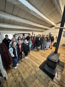 Holt & Balcom Logging Camp Director Kathleen Marsh gives private tour to St. Norbert College history students.