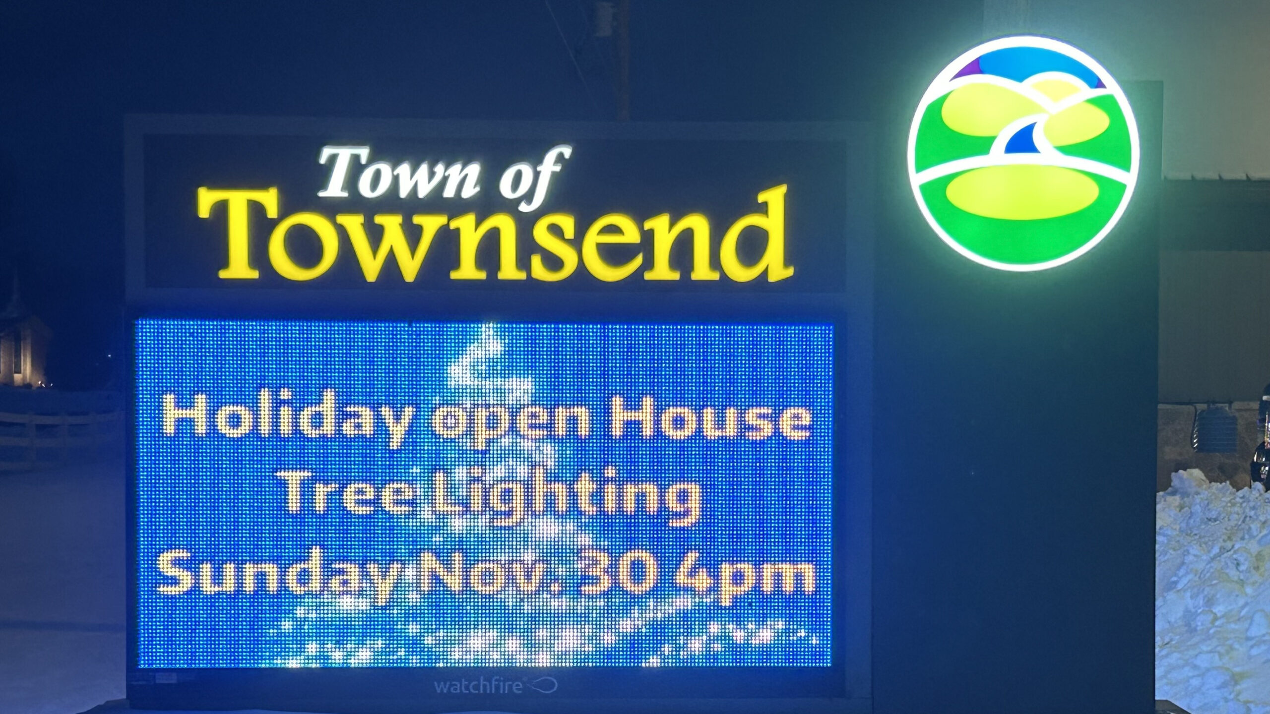 The Christmas season began with a tree lighting at Townsend Town Hall on November 30, 2025, at 4:00 p.m. Scott Wycherly led carols before the lighting, and the Esposito Family’s decorated tree was chosen as fan favorite. Hoffman Landscaping donated the trees and Martell Simply Rustic made the signs for the trees. Click on image above to enlarge and scroll through all decorated trees. Visit the trees throughout the holidays at the Townsend Town Hall located at 16564 Elm St.