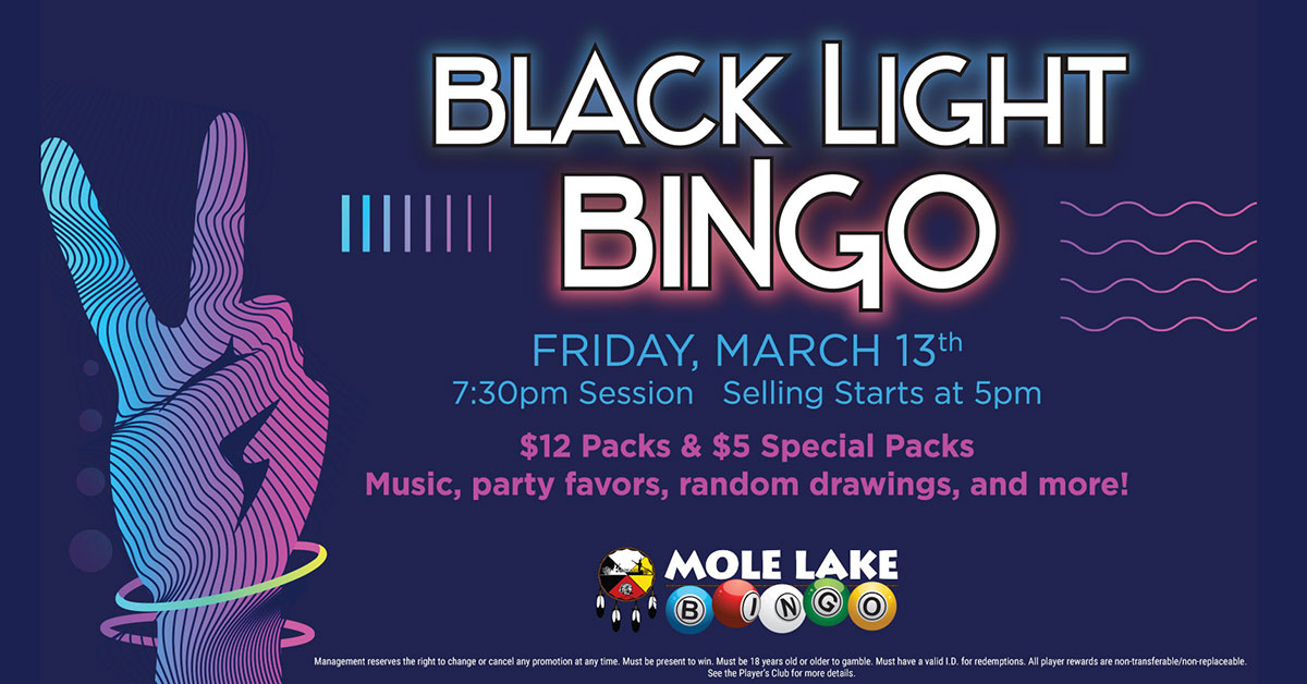 Black Light Bingo Night at Mole Lake Casino Lodge