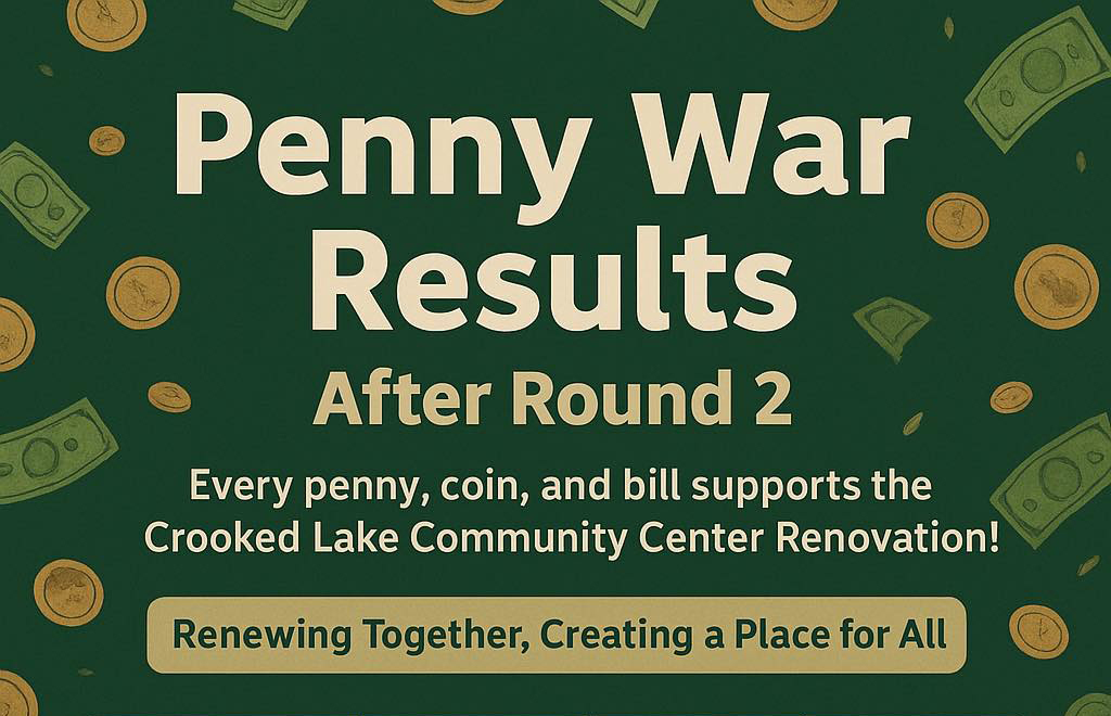 The results for Round 2 of the Penny War for the Crooked Lake Community Center Renovation Project are in.