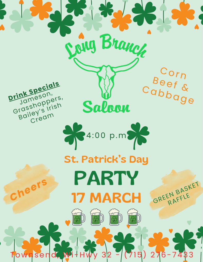 TOWNSEND – The Long Branch Saloon invites you to join their St. Patrick’s Day Party on Tuesday, March 17, 2026. Festivities begin at 4:00 pm and promise an evening filled with Irish-themed fun and camaraderie.